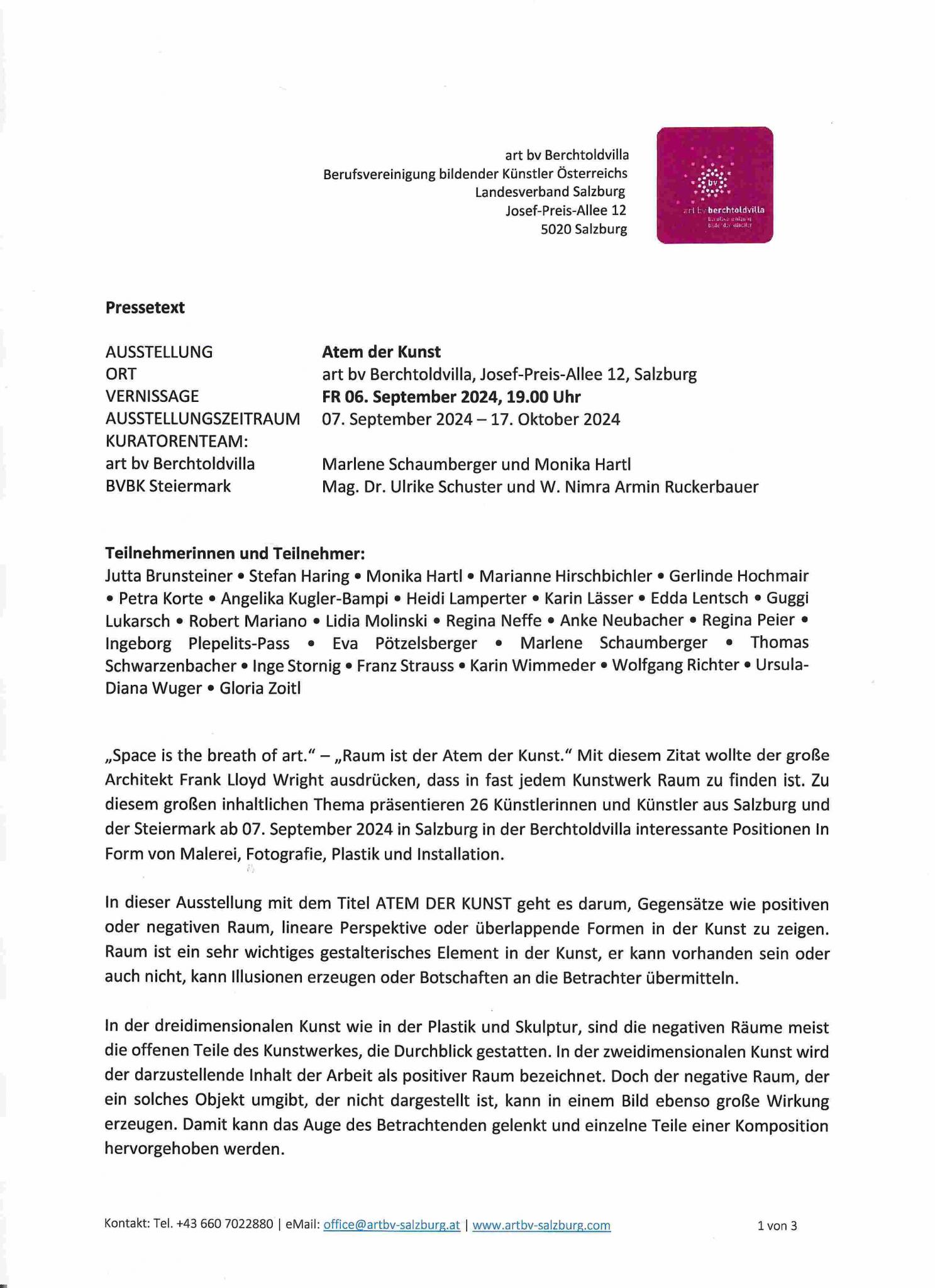 06.09.24 Salzburg, Berchtoldvilla - 31.10. Graz, Galerie Centrum