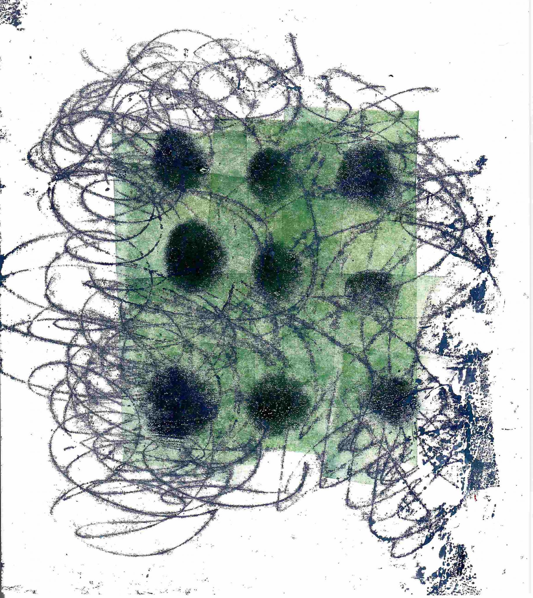 Monotypie GrünBlau 9 Punkte