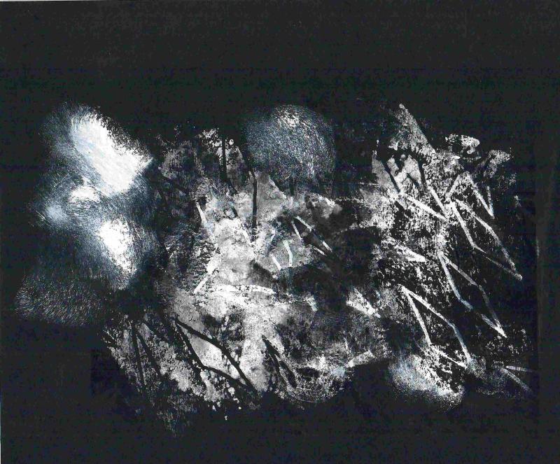 Habe heute gerade eine kleine Grafik mit Ölkreidestift von 2006 gescannt - ähnliche grafische Formen wie die Serie Rhomben .... ich überlege, weshalb die Rhombenform ... usw ... aber dabei auch die Überlegunge, was diese Grafik vom Holzschnitt unterscheidet.