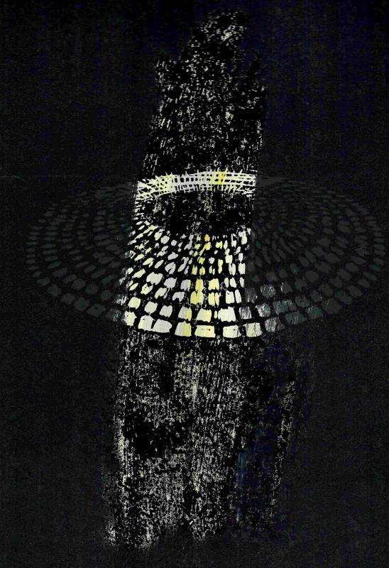 Habe heute gerade eine kleine Grafik mit Ölkreidestift von 2006 gescannt - ähnliche grafische Formen wie die Serie Rhomben .... ich überlege, weshalb die Rhombenform ... usw ... aber dabei auch die Überlegunge, was diese Grafik vom Holzschnitt unterscheidet.