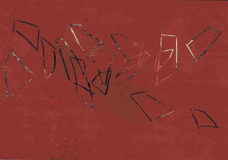 dann die Idee, dankbar dem Schicksal schon 1992 bei Kiffmann, zu dem ich eigentlich der Radierung wegen geraten bin, dann auch Holzschnitt versuchte ... Auch Kerbschnitzen, total interessant, aber nur bei einem Eck eises Kirscholzbrettes geblieben ... schließlich, weil der "Ruf" "Holzschnitt" doch "etwas überhol"t klang - wieder dabei belassen